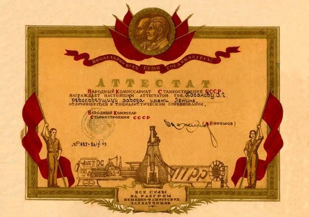 В 1943 году был превзойден уровень производства, достигнутый в предвоенном 1940 году, за что завод был награжден переходящим Красным знаменем Государственного Комитета Обороны и ЦК ВКП (б). 11 октября 1943 года Указом Президиума Верховного Совета СССР за образцовое выполнение заданий Правительства по оснащению машиностроительных заводов новейшими высокопроизводительными станками предприятие было удостоено высшей награды Родины – ордена Ленина.